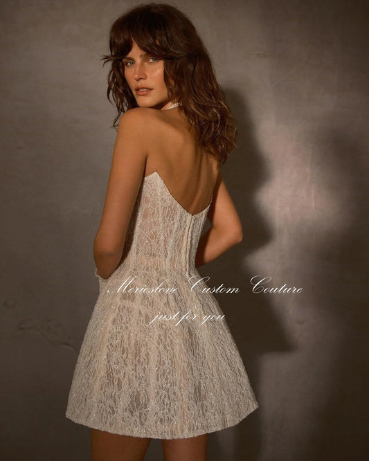 Merioslove Boho Mini Wedding Dresses Lace Appliques Sleeveless Strapless Civil Bride Gowns Beach Short Bridal Gown 2024