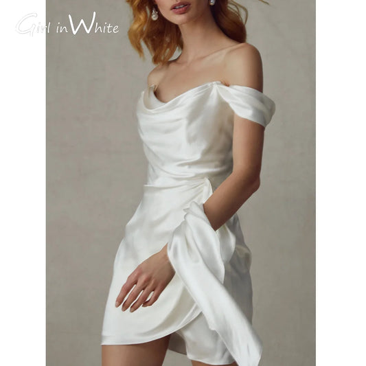 Elegant Short Wedding Dress Women 2024 White Lace-up Off The Shoulder Pleat Side Split Satin Bridal Gown Vestidos De Noiva