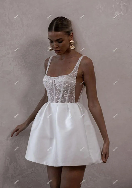 Booma Short Wedding Dresses Straps Sweetheart Pearls Mini Bridals Gowns for Wedding Prom Cocktail Party Dress Plus Size Outfits