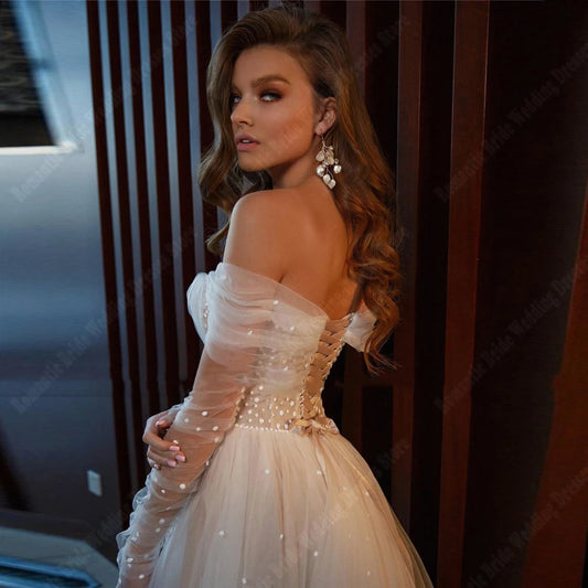 Elegant A-Line Pretty Wedding Dresses For Woman Sexy Mermaid Off Shoulder Long Sleeves Fluffy Princess Style Mopping Bride Gowns