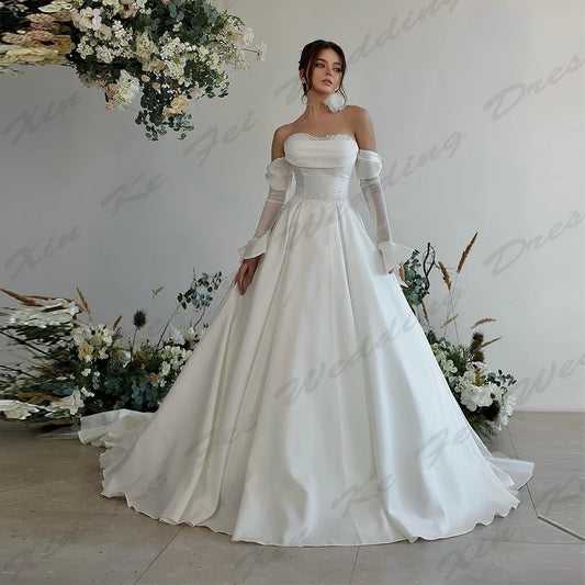 Exquisite Beautiful Women Wedding Dresses Elegant Smooth Satin Surface Bridal Gowns Mopping Length Princess Vestidos De Novias