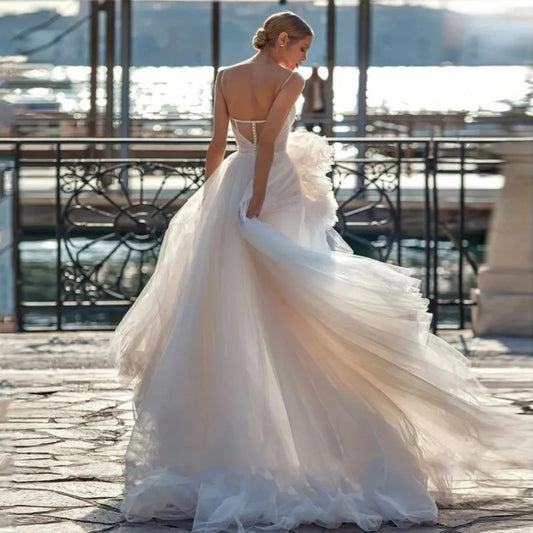 Elegant Pretty Women Wedding Dresses Bright Lace Printing Tulle Bridal Gowns Mopping Length Princess Backless Vestidos De Novias