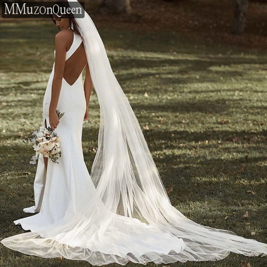 MMQ M92 White Long Bridal Veil with Comb Single Layer Soft Tulle Cathedral Wedding Veil Bride wedding veil 2024