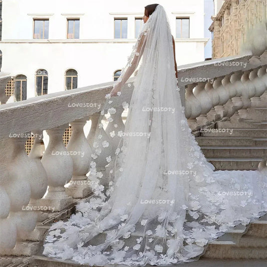 Luxury Long Bridal Veil White Ivory Wedding Veils With Comb Lace Edge Applique Elegant Cathedral Length Wedding Accessories