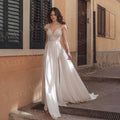 2024 Boho Graceful A Line Women's Wedding Dresses Charming Lace Appliques Bride Gowns Off The Shoulder Side Split Robe De Mariee