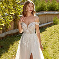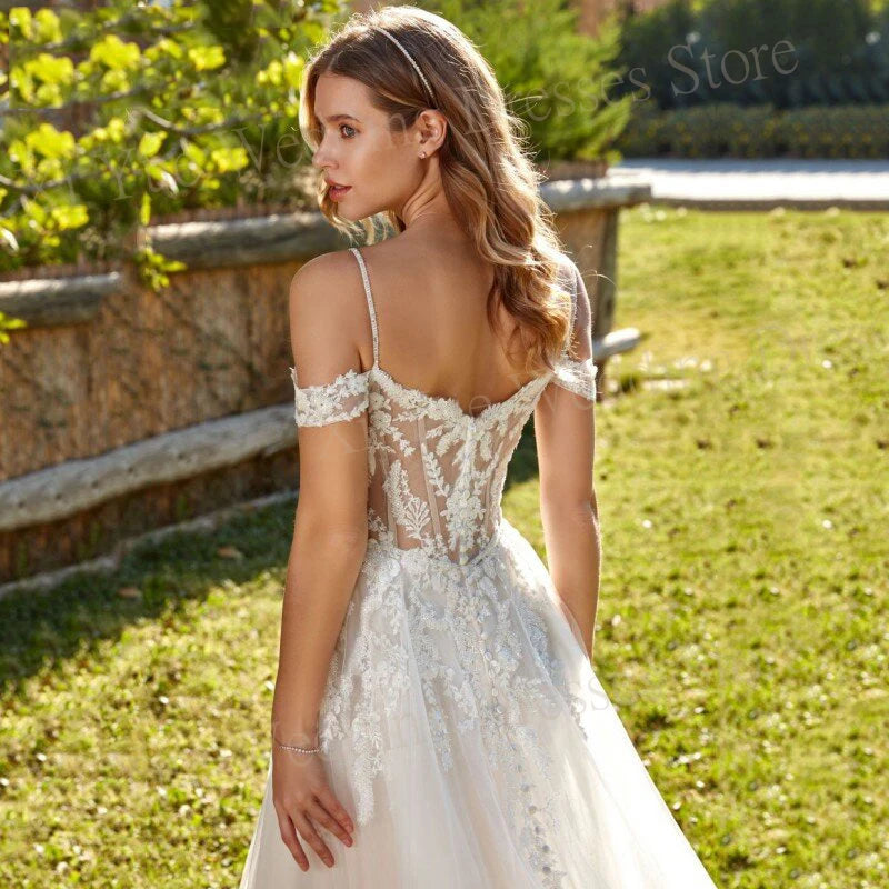 2024 Elegant Sweetheart A Line Women's Wedding Dresses Lace Appliques Button Bride Gowns Off The Shoulder Tulle Side Split 웨딩드레스