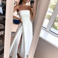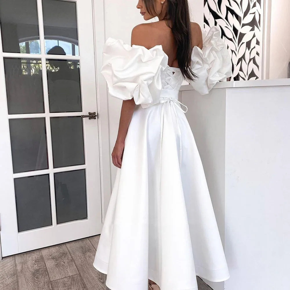 A-line Solid Color Bride Gown Boat Neck High Slit Simple Wedding Dresses Backless Ankle-Length Customize To Measures Stunming