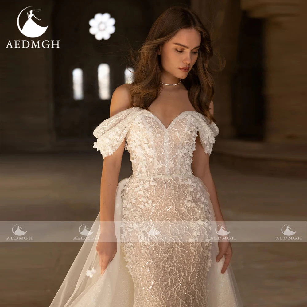 Aedmgh Mermaid Elegant Wedding Dresses 2024 Sweetheart Off The Shoulder Vestido De Novia Lace Detachable Train Robe De Mariee