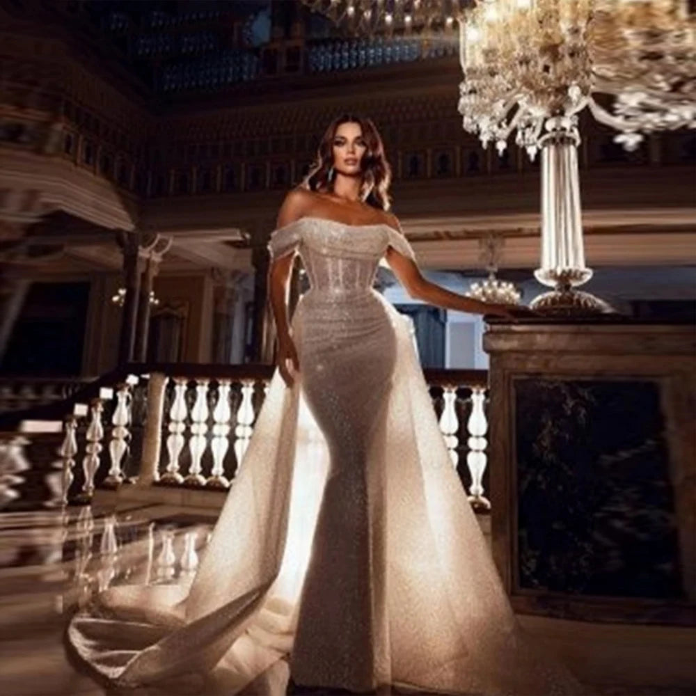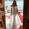 Bohemia Mermaid Women Wedding Dresses Sexy Off The Shoulder Engagement Bridal Gowns Lace Sleeveless Princess Vestidos De Novias