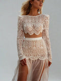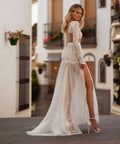 Bohemian Style Two Pieces Wedding Dress Beach Lace Bridal Gown For Wedding Long Sleeve Long Side Slit Boho Bride Dresses