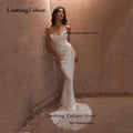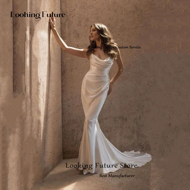 Boho Satin Mermaid Wedding Dress Sleeveless Simple Strapless Wedding Gown Backless Pleat Sweep Train Bridal Dress Robe De Mariee