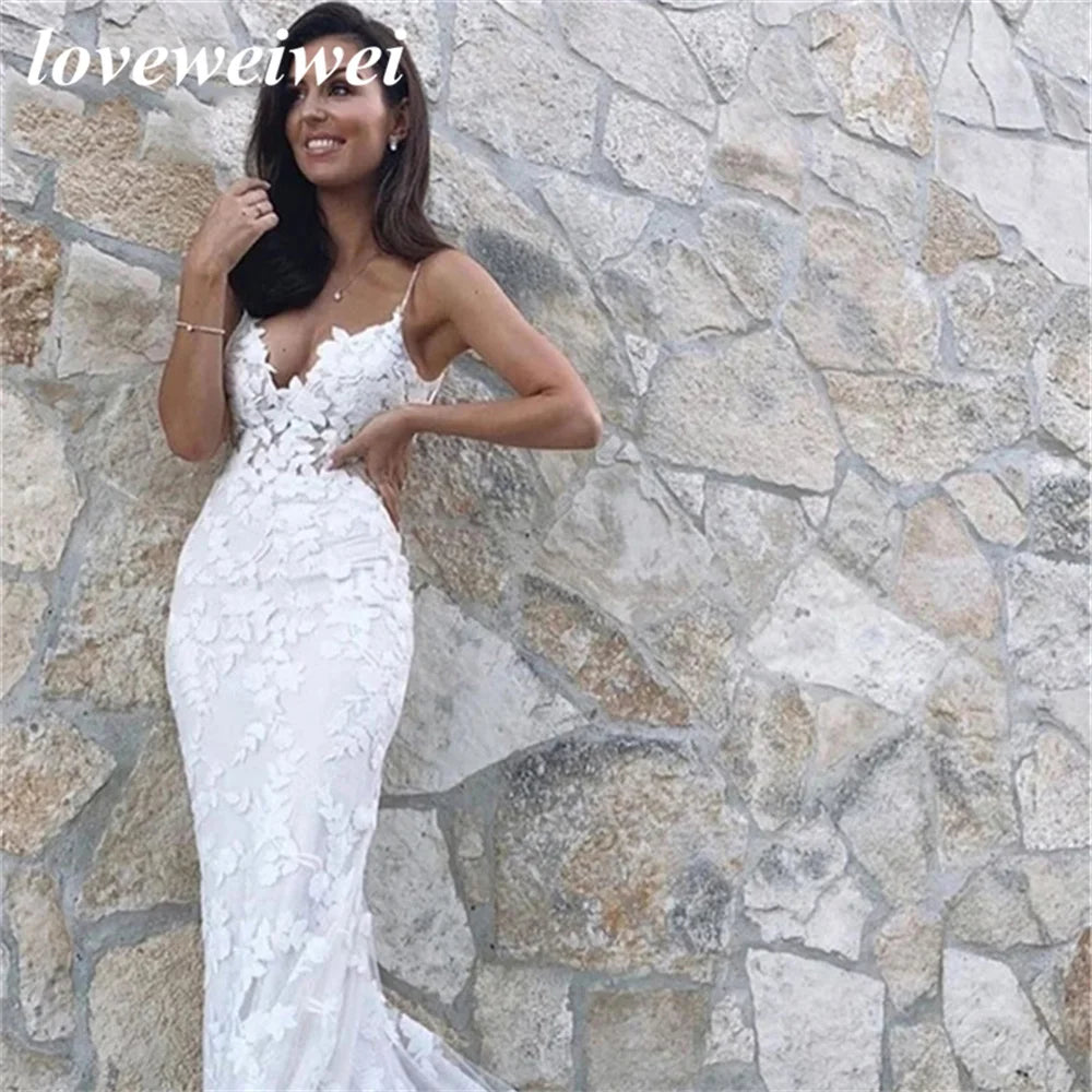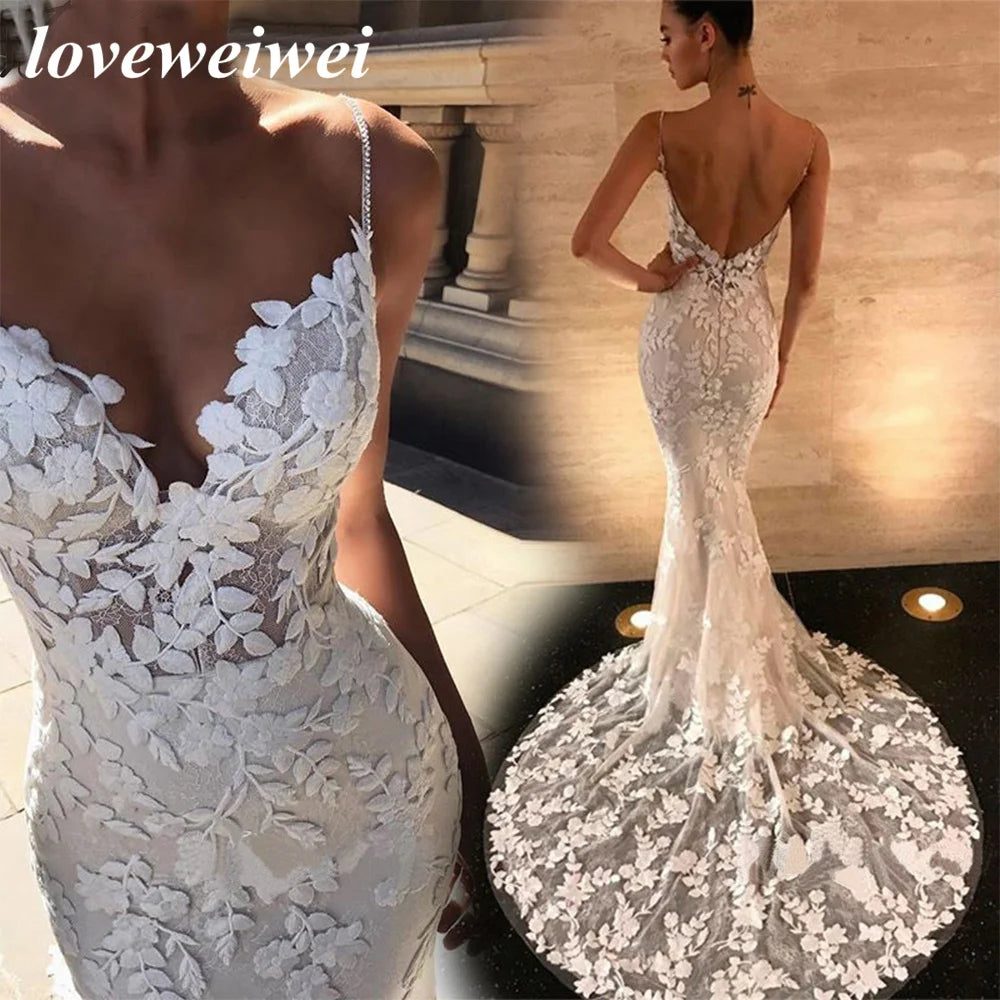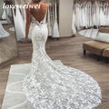 Boho Wedding Dresses Mermaid Bridal Dress 2022 Spaghetti Straps Backless Lace Appliques Beach Bride Gowns Vestido De Noiva