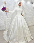 Charming Muslim A-Line Wedding Dresses Dubai Arabic Islamic Brial Gowns Lace Appliques Beaded Elegant Satin Vestido De Noiva2024