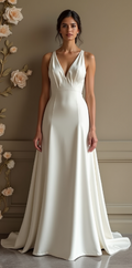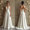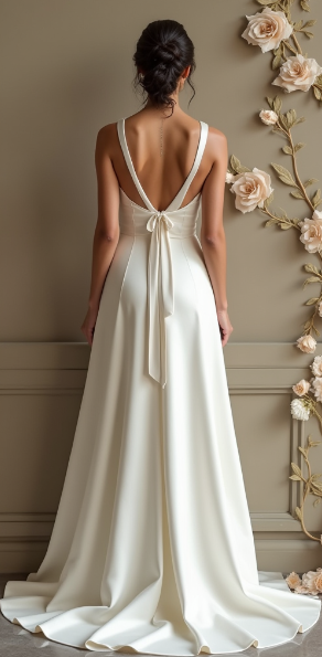 Timeless elegance meets modern sophistication in this stunning satin wedding dress. Crafted from luxurious, smooth satin, the gown drapes effortlessly, creating a sleek and refined silhouette. The fabric’s subtle sheen catches the light, adding a soft glow to every movement. Featuring a beautifully tailored bodice that enhances the figure, the dress flows into a graceful A-line (or fitted) skirt, exuding classic charm. With its minimalist design, free from excessive embellishments, this gown is perfect for the bride who desires understated luxury. Whether adorned with a delicate train, a chic high slit, or a structured neckline, this satin wedding dress embodies pure sophistication and timeless beauty.
