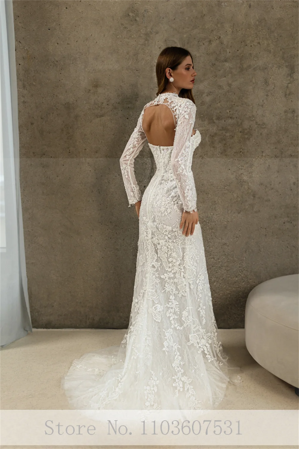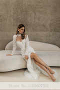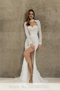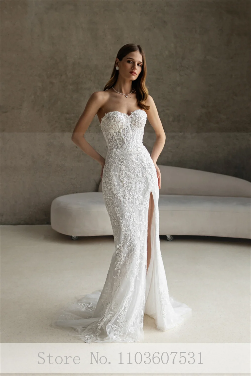 Detachable Cape Appliques Lace Tulle Wedding Dress for Women Mermaid Court Wedding Party Gown with Side Slit robe de mariée