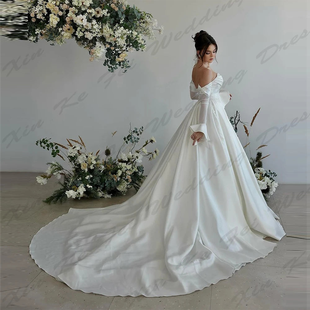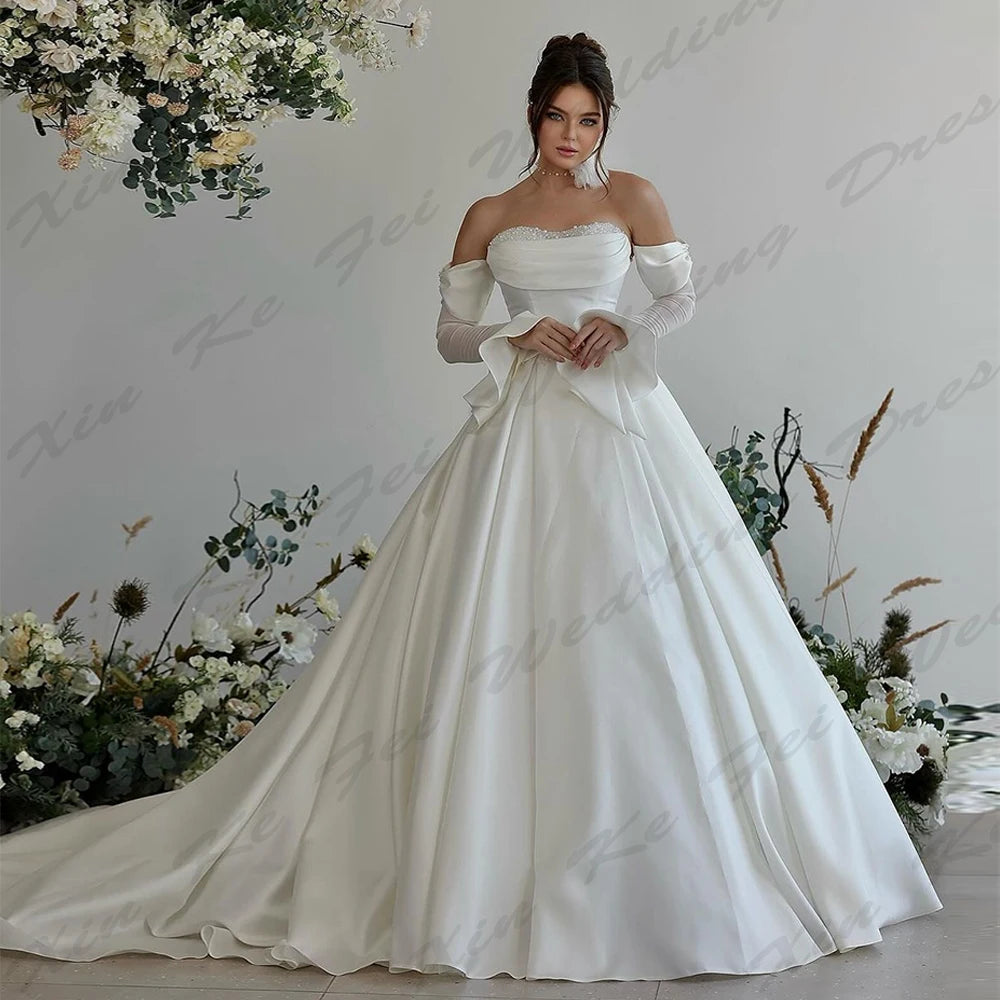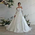 Elegant A-Line Pretty Wedding Dresses For Woman Sexy Mermaid Off Shoulder Long Sleeves Fluffy Princess Style Mopping Bride Gowns