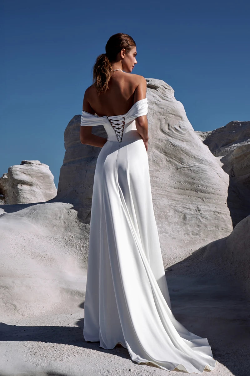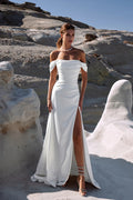 Elegant Satin Off The Shoulder Wedding Dress Soft Satin Side Slit A-Line For Women Customize To Measures Robe De Mariee Elegant