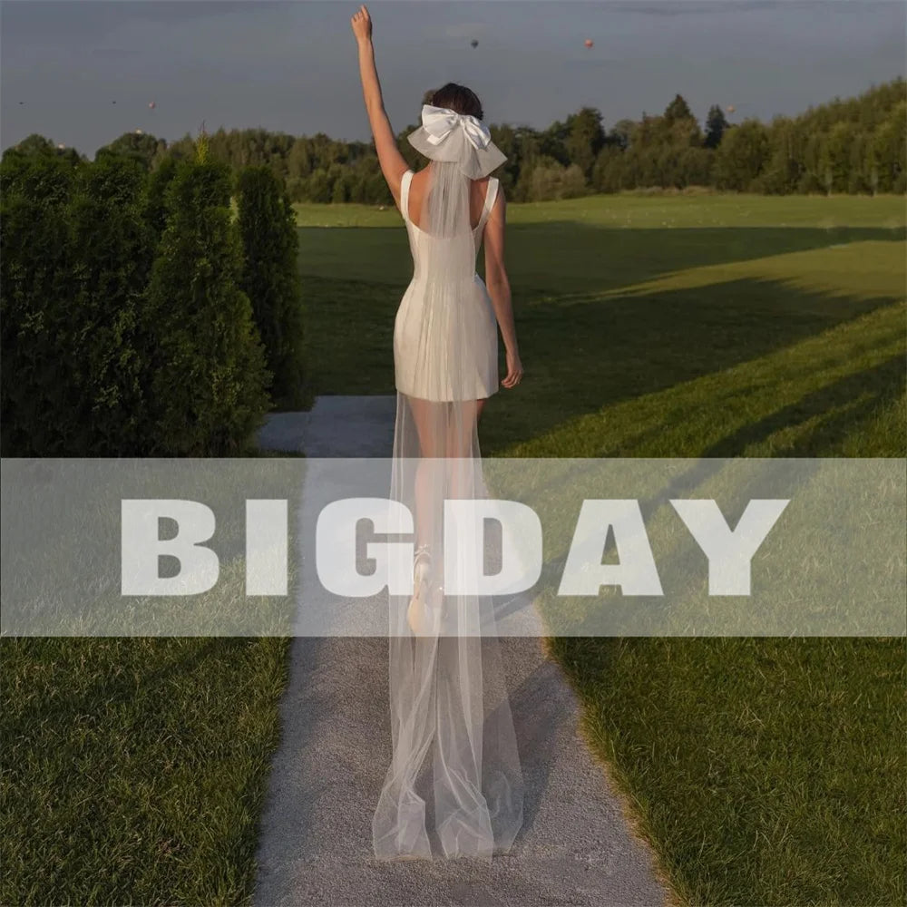 Elegant Short Wedding Dress Women 2024 Open Back Spaghetti Straps Square Collar Simple Bridal Gown Above Knee Vestidos De Noiva