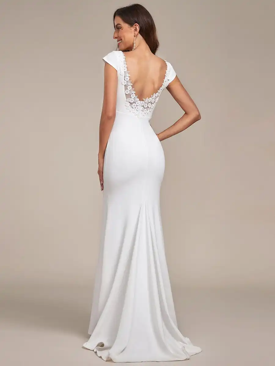 Elegant Wedding Dresses Cap Sleeve Deep V-Neck Backless Ever Pretty 2024 of Mermaid A-line Fishtail White Dresses