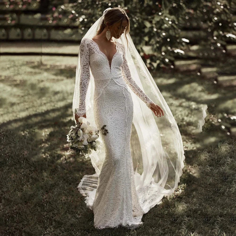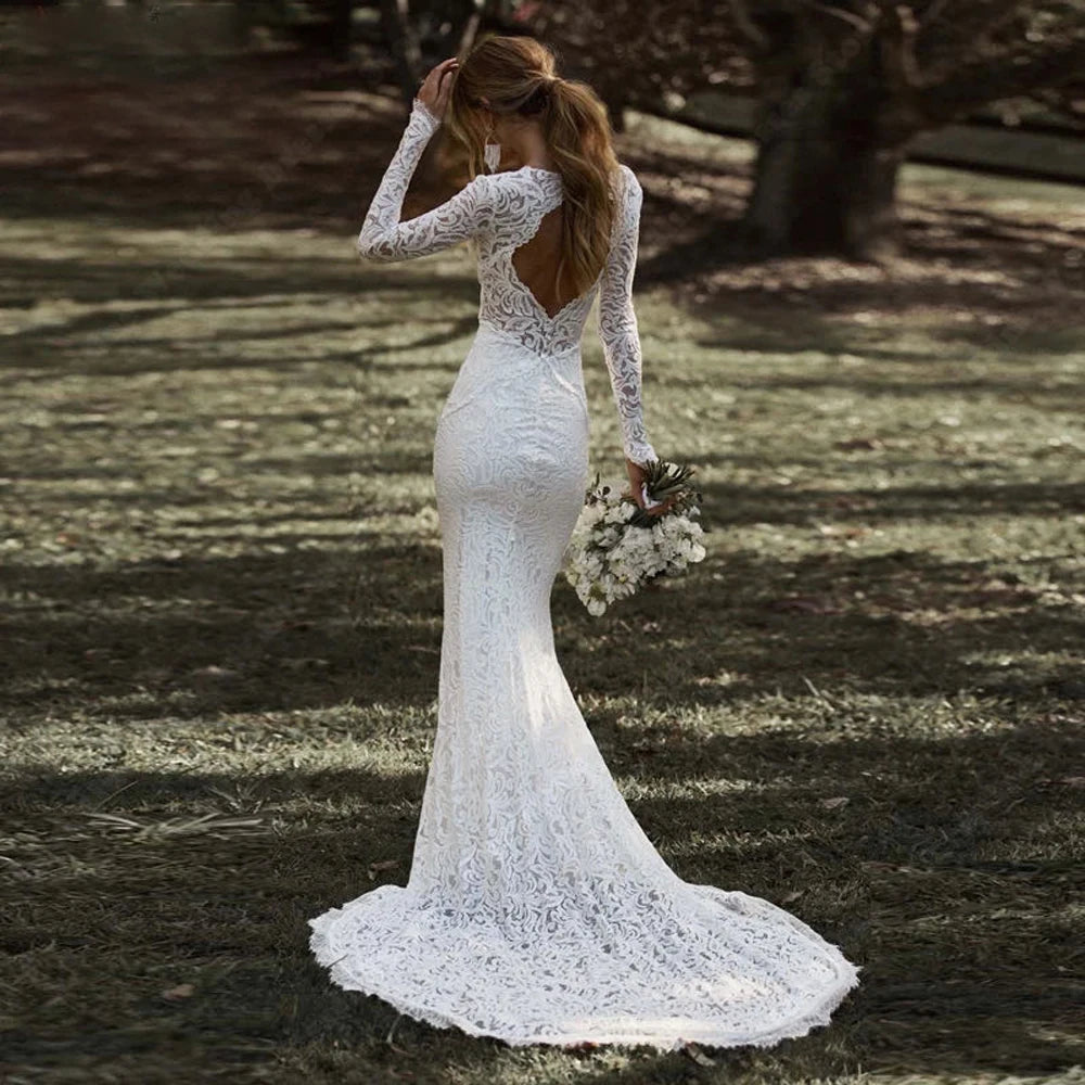Exquisite Luxury Women Wedding Dresses Sexy Lace Appliques Mermaid Bridal Gowns Long Sleeves Backless Engagement Ball Robes 2024