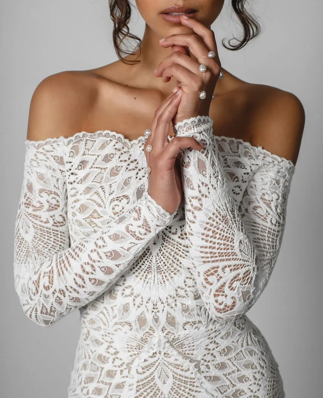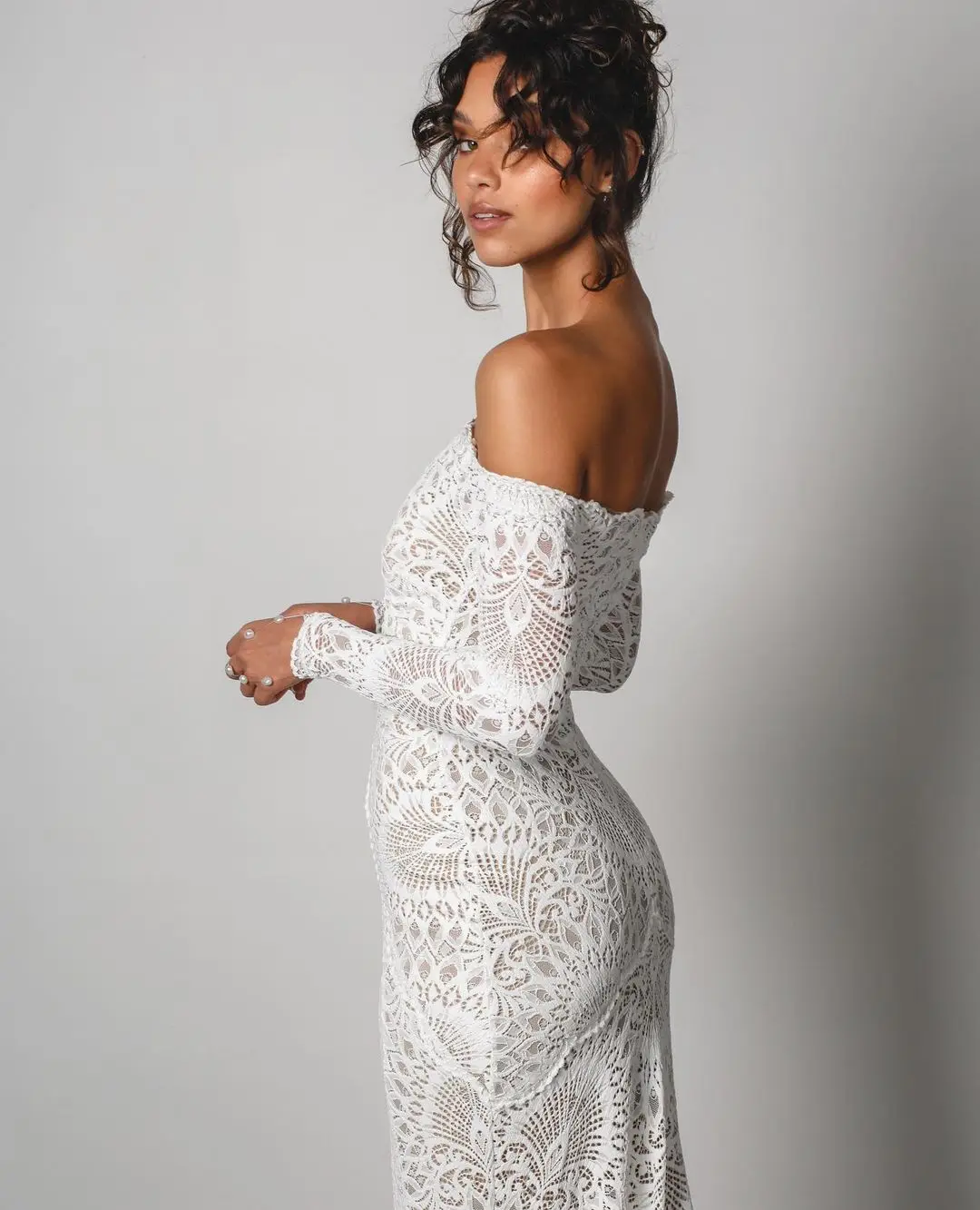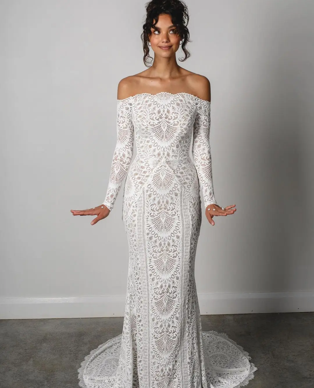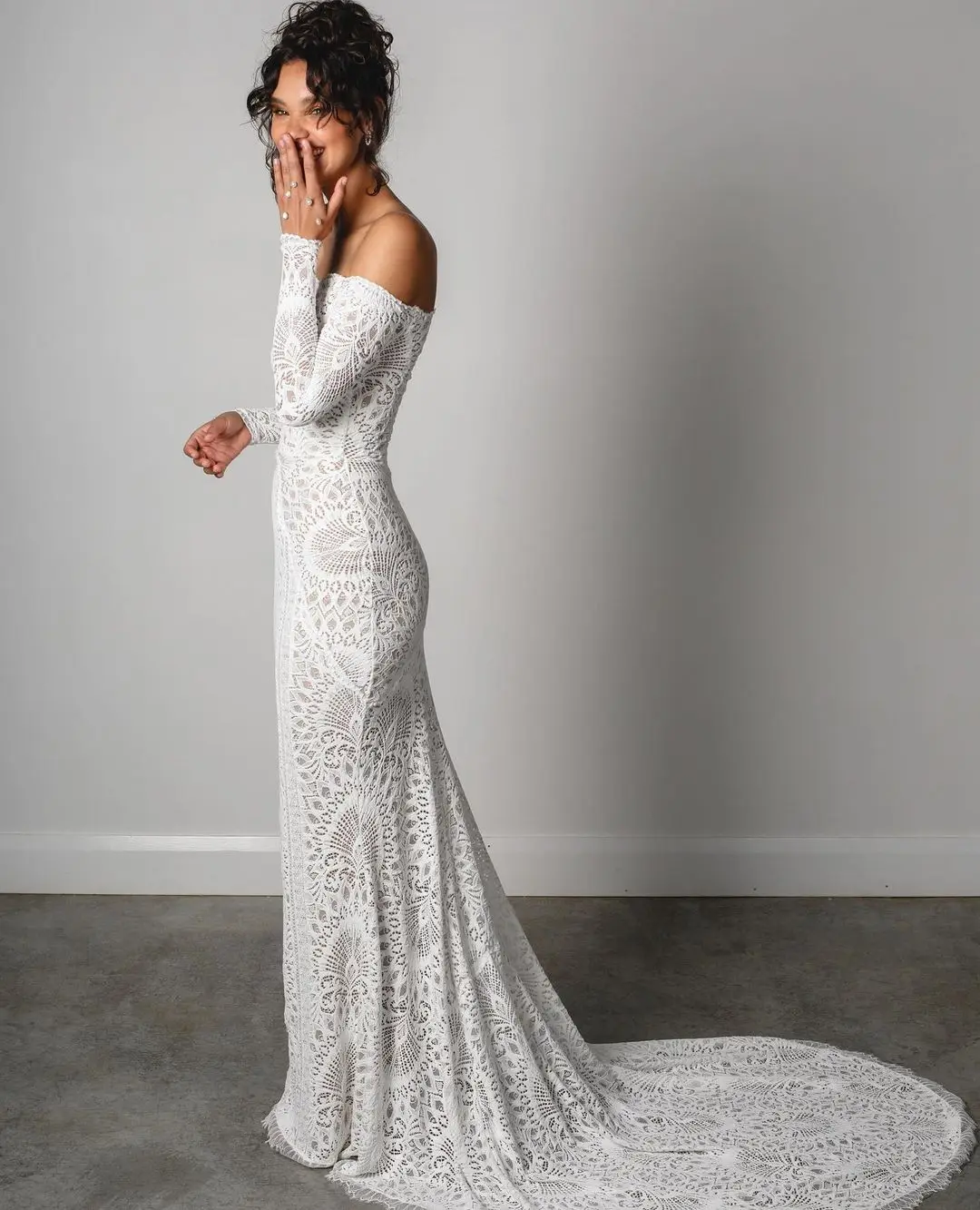 Wedding Dress Off the Shoulder Soft Ivory Tulle Veil with An Elegant and Intricate Lace Gown Bridal Mermaid Maxi Gowns