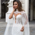 Fmogl Exquisite Sweetheart Illusion Lace Mermaid Wedding Dresses Luxury Appliques Button Court Train Trumpet Bridal Gown