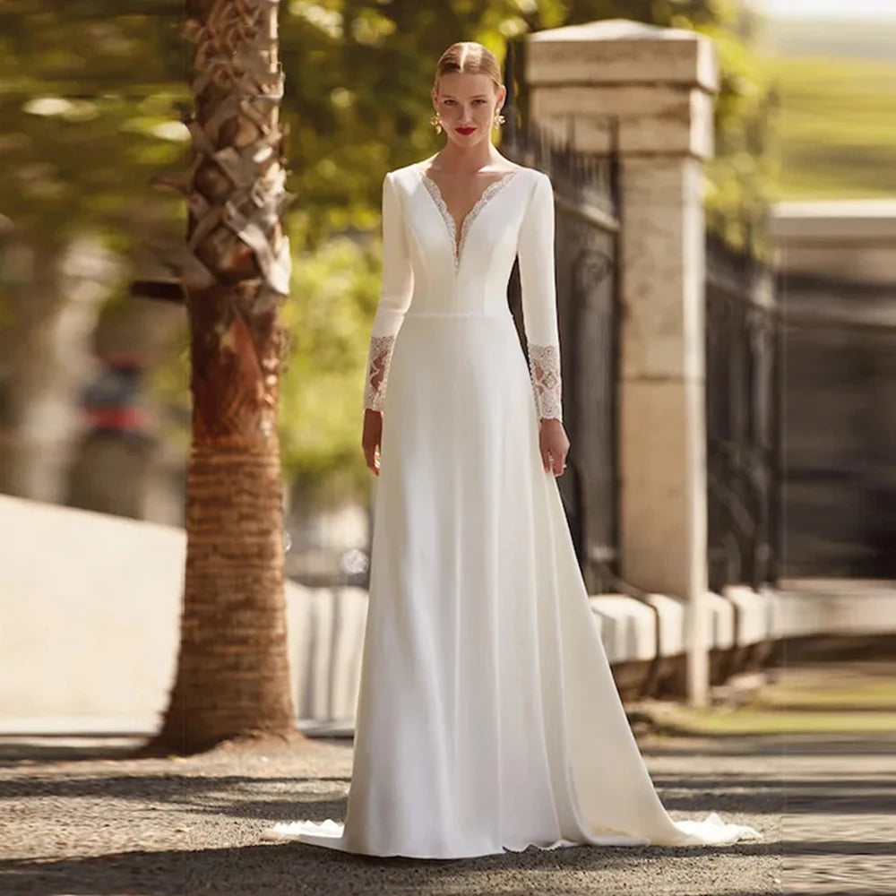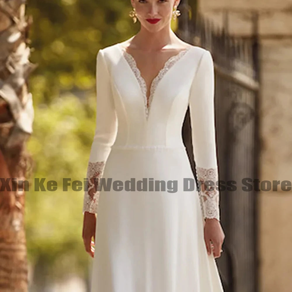 Gorgeous Women's Sexy V-Neck Bridal Dresses Long Sleeve Lace Applique Chiffon Open Back Wedding Welcome Guest Gowns 2023 Vestido