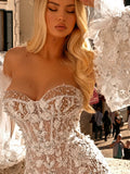 Illusion Sweetheart Neck Wedding Dresses Pearls Appliques Bridal Gown Modern Floor-length Bride Dresses Vestidos De Novia