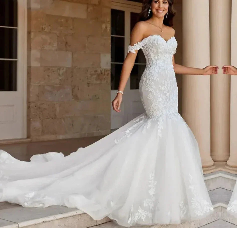 Boho Sexy Mermaid Sweetheart Neck Wedding Dress Luxury Off Shoulder Bridal Gown Back Button Robe De Mariée 2024 Plus Size