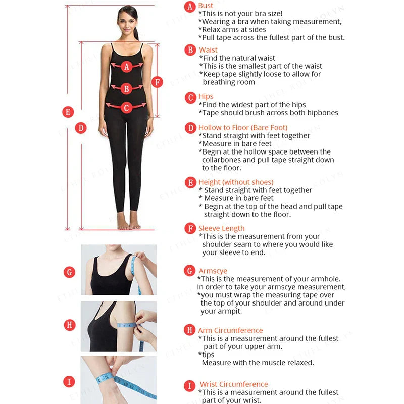 Measure your body and compare it with our size chart. If you cannot find your size or want a more accurate fit, please send us your measurements as follows before ordering:
