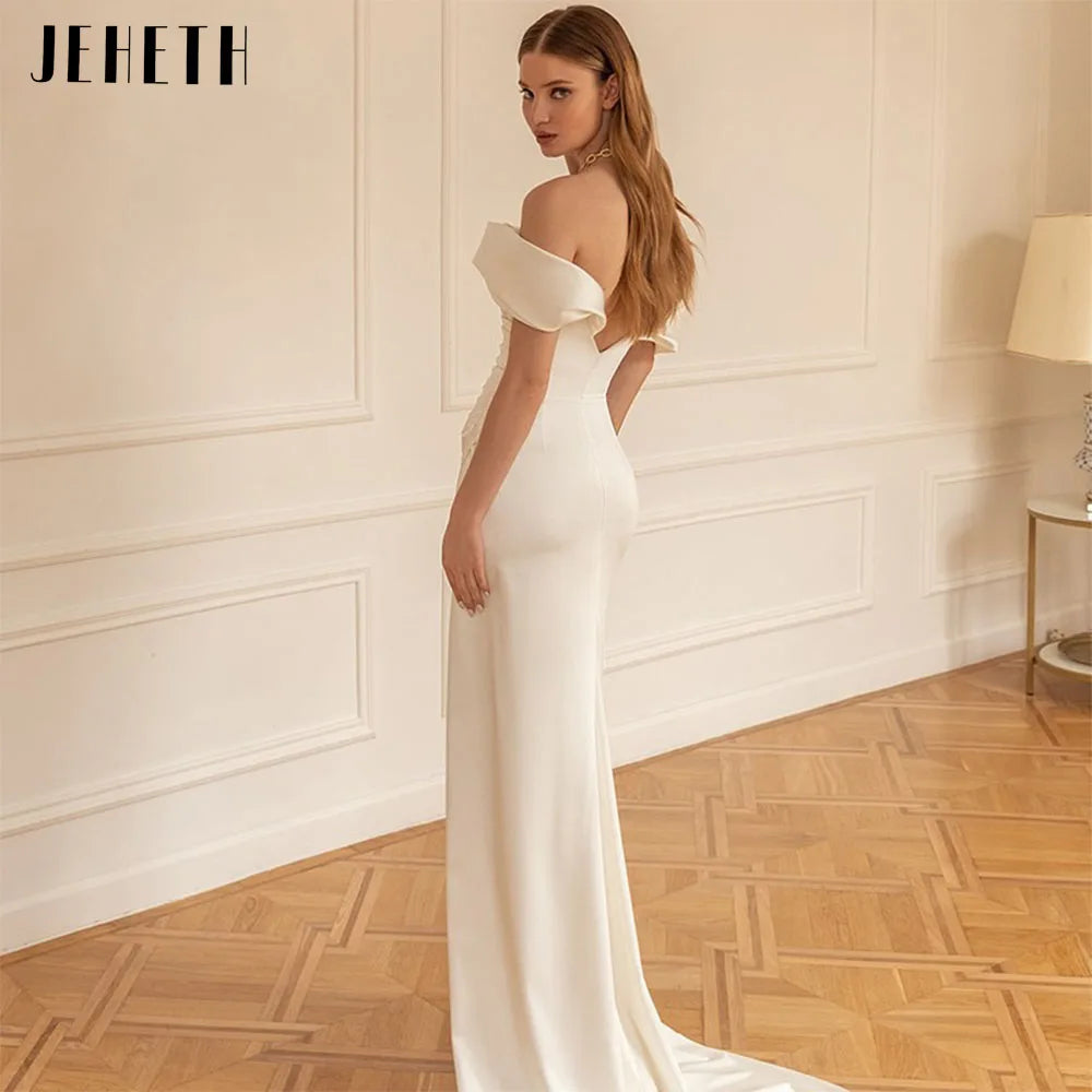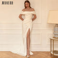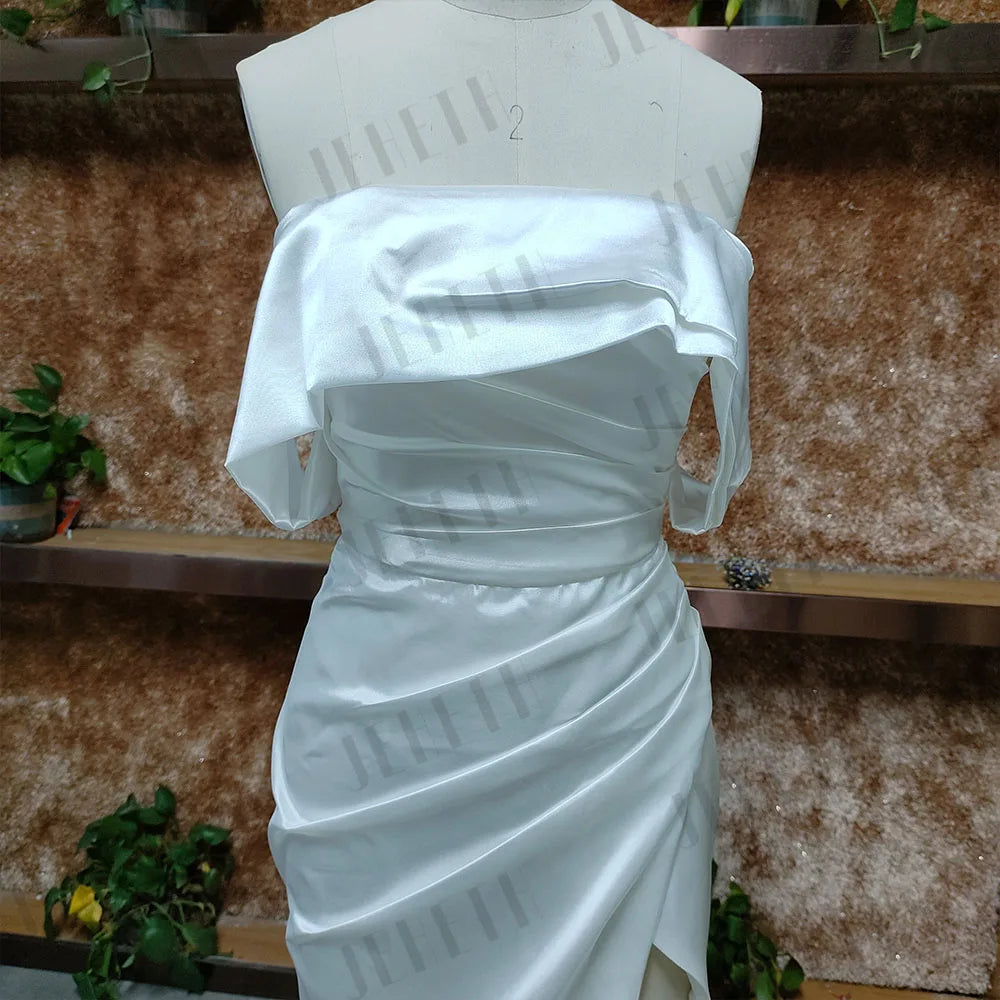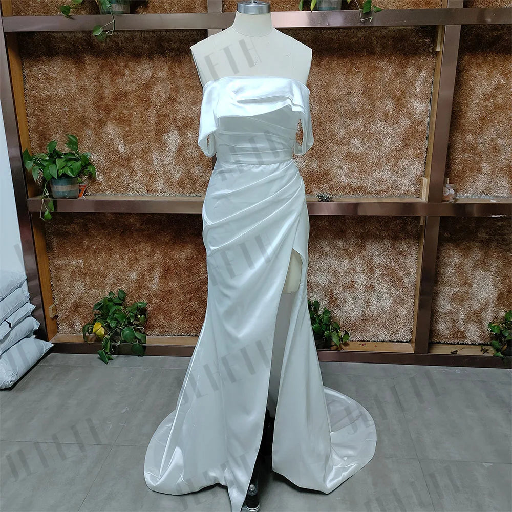 JEHETH Sexy Strapless Wedding Dresses Women Civil Off Shoulder Satin Mermaid High Split Backless Bridal Gown Vestidos De Novia