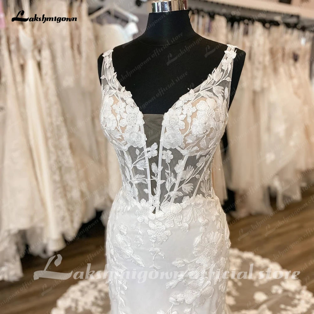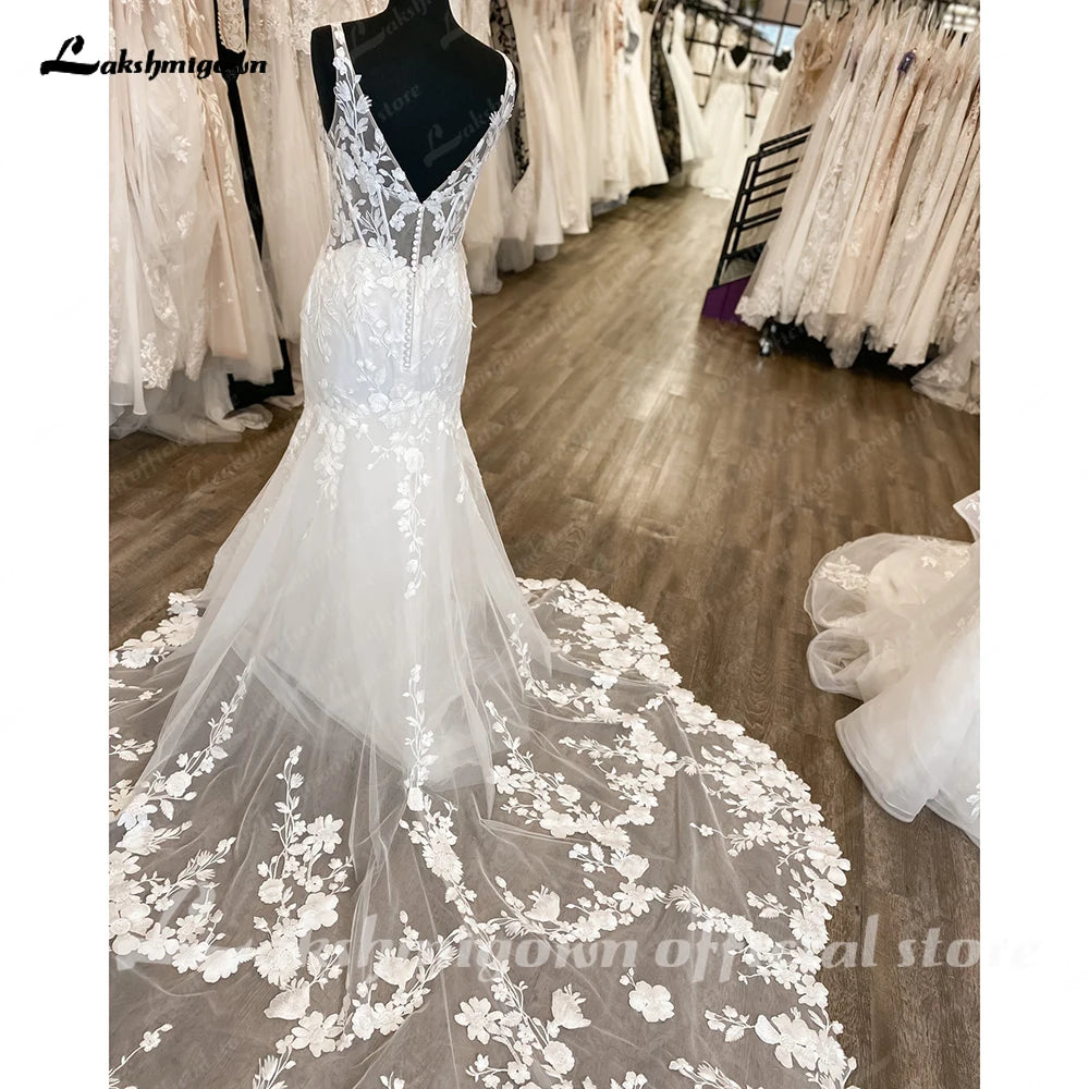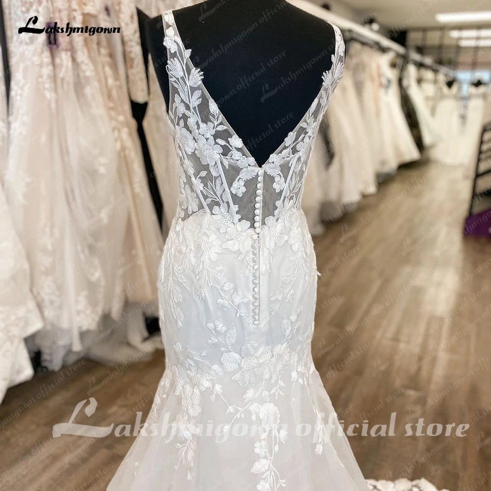 Lakshmigown Luxurious Mermaid/Trumpet Wedding Dresses Off the Shoulder V-neck Lace Backless Bridal Gown robe mariée sirene