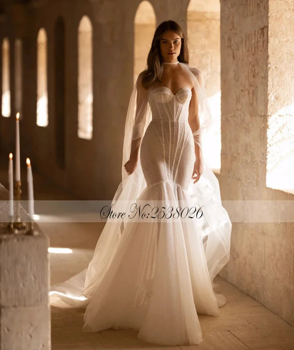 Bling Fabric Sweetheart Mermaid Wedding Dresses With Removable Capel Off Shoulder Trumpet Bridal Gowns