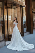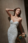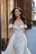 Luxury Cape 3d Lace Mermaid Wedding Dress Sparkly Detachable Train Strapless Lowered Shoulders Sheath Floral Bridal Gown Robe