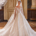 Luxury V-Neck Women Wedding Dresses Bright Sequin Bridal Gowns A line Mopping Length Long Sleeves Princess Vestido De Novia 2024
