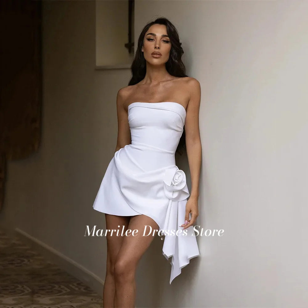 Marrilee Sexy Short 3D Flower Strapless Stain Evening Dresses Charming Mini Sweetheart Above Knee Sleeveless Open Back Prom Gown