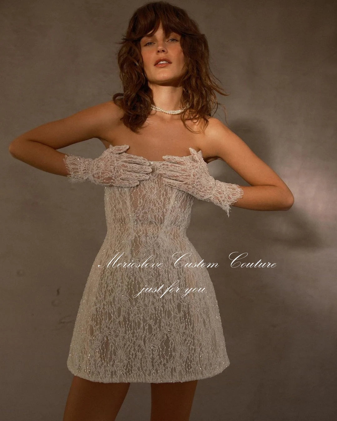 Merioslove Boho Mini Wedding Dresses Lace Appliques Sleeveless Strapless Civil Bride Gowns Beach Short Bridal Gown 2024