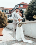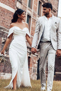 MisShow Women Simple White Satin Wedding Dresses 2023 Mermaid Split Off The Shoulder Ruched Evening Party Gowns Robe De Soiree