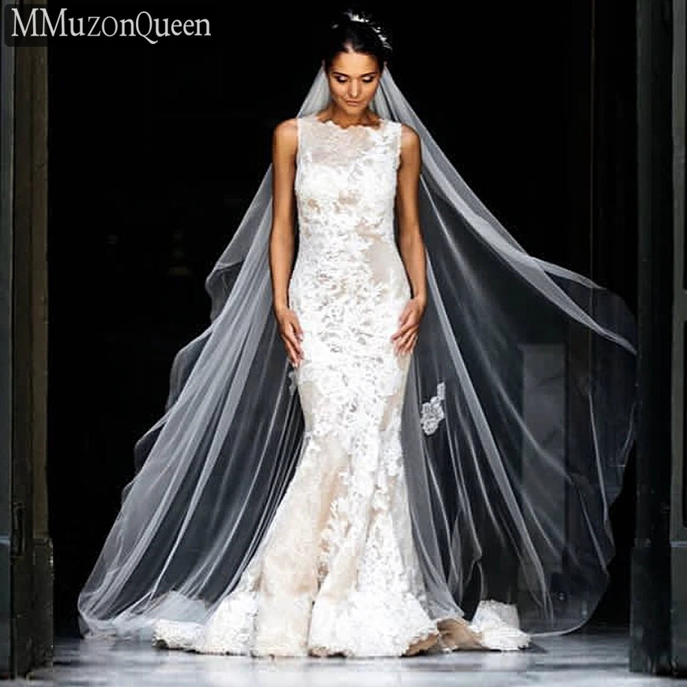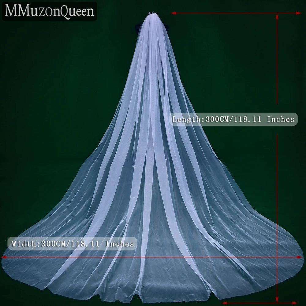 MMQ M92 White Long Bridal Veil with Comb Single Layer Soft Tulle Cathedral Wedding Veil Bride wedding veil 2024