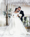 NUOXIFANG Luxury White Satin Ball Gown Wedding Dress 2022 Off The Shoulder Chapel Train Appliques Bride Dresses Vetidos de novia