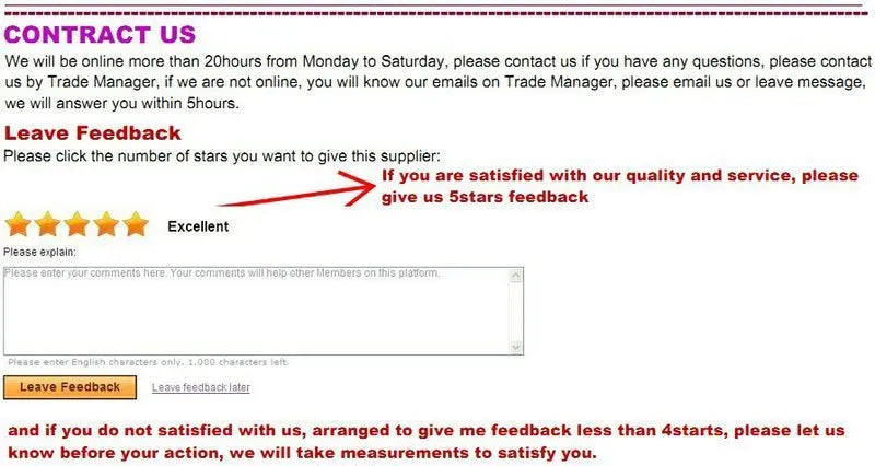 - All returned products will be fully refunded as long as they have not been used or damaged.