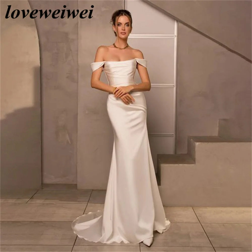 Off The Shoulder Charming Wedding Dress Elegant Soft Stain Wedding Gown Strapless Bridal Dress Sexy Bridal Gown vestido novia
