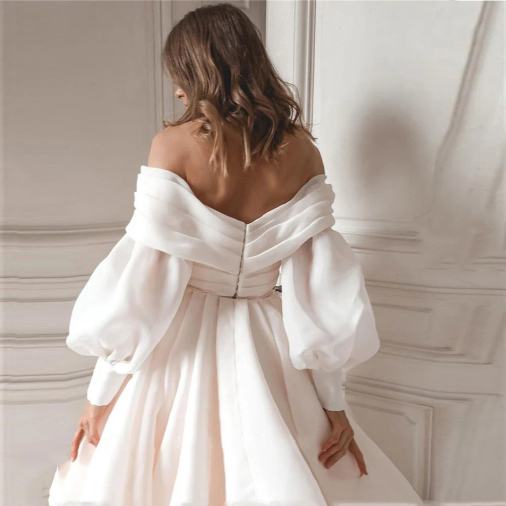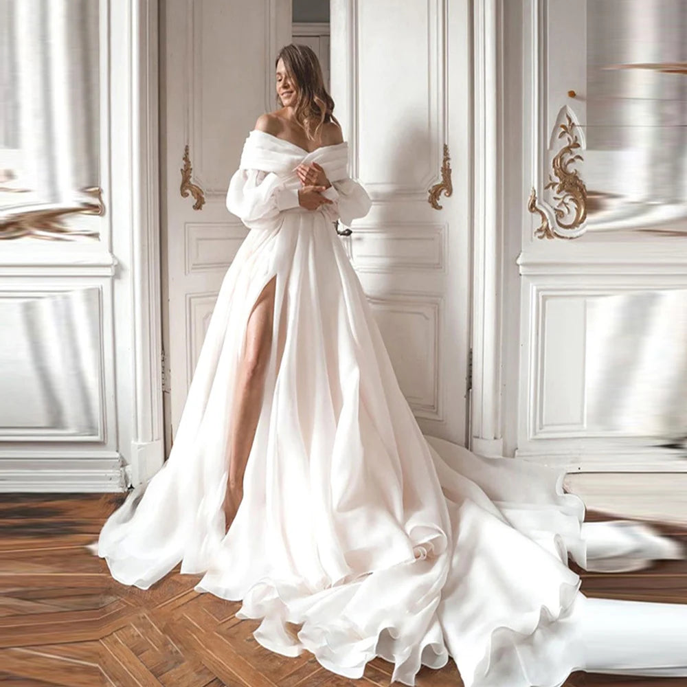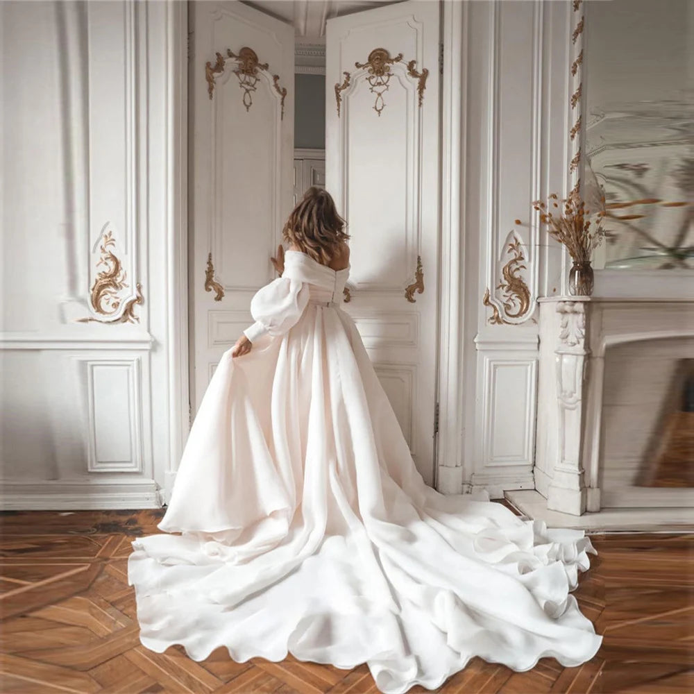 Off The Shoulder Long Sleeves Wedding Dresses Celebrity Wedding Custom Made A-Line Bridal Gowns Mopping Length Vestidos De Novia