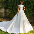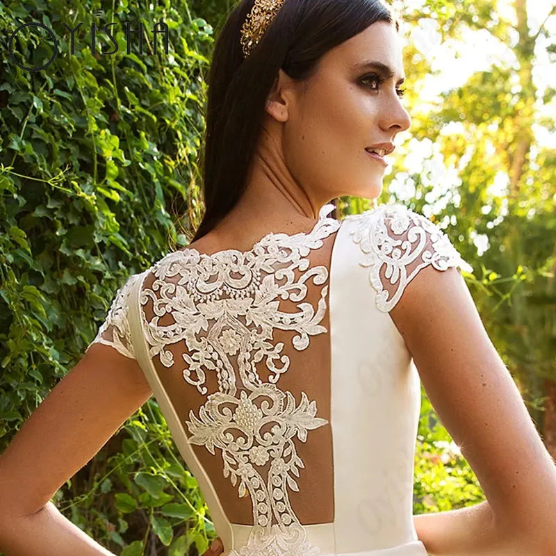 OYISHA Appliques Scoop Sexy Wedding Dresses Satin Cap Sleeves Exquisite Bridal Gown Simple A-Line Lace White Vestido De Mariages