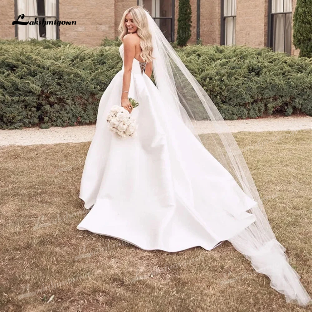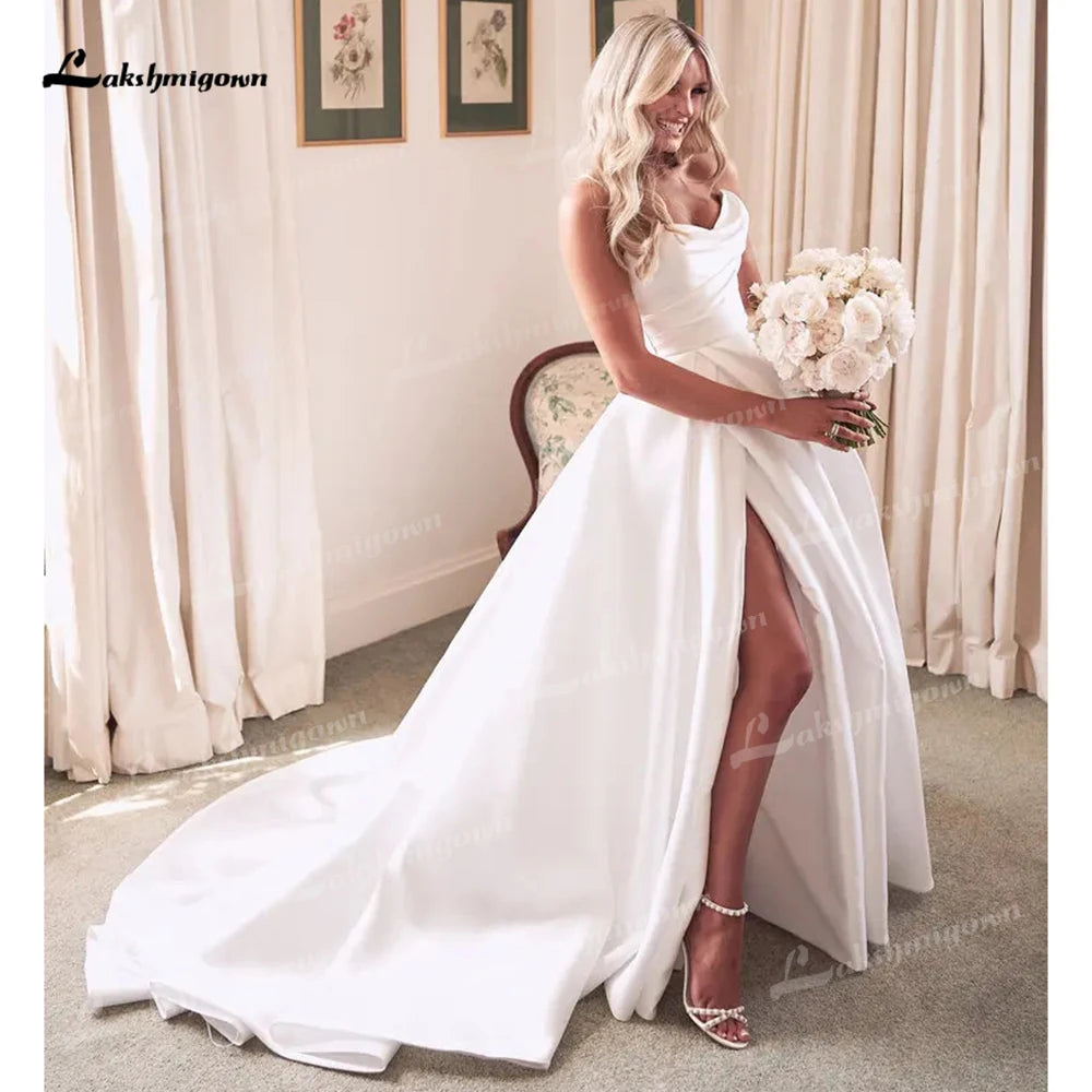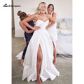 Popular Pleat Sweetheart A Line Wedding Dresses Side Slit Vestido De Noiva Satin Appliqued Women Bridal Dresses Factory Custom