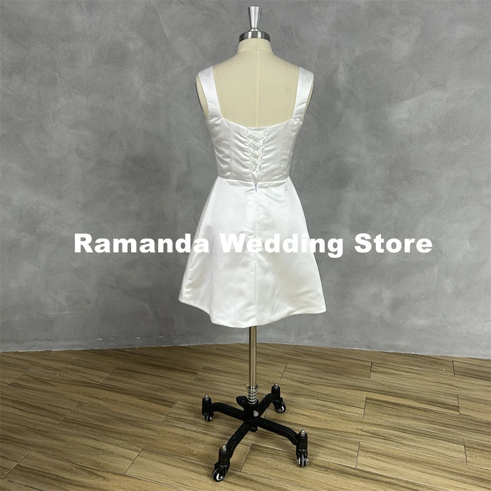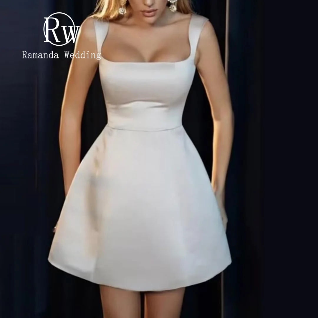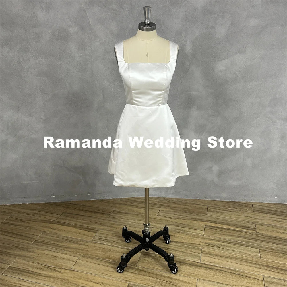 Ramanda Mini Square Neck Short Wedding Dress For Women Simple Sleeveless Satin Bridal Gown For Charming Women Vestidos De Novia