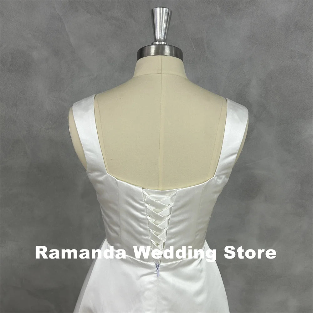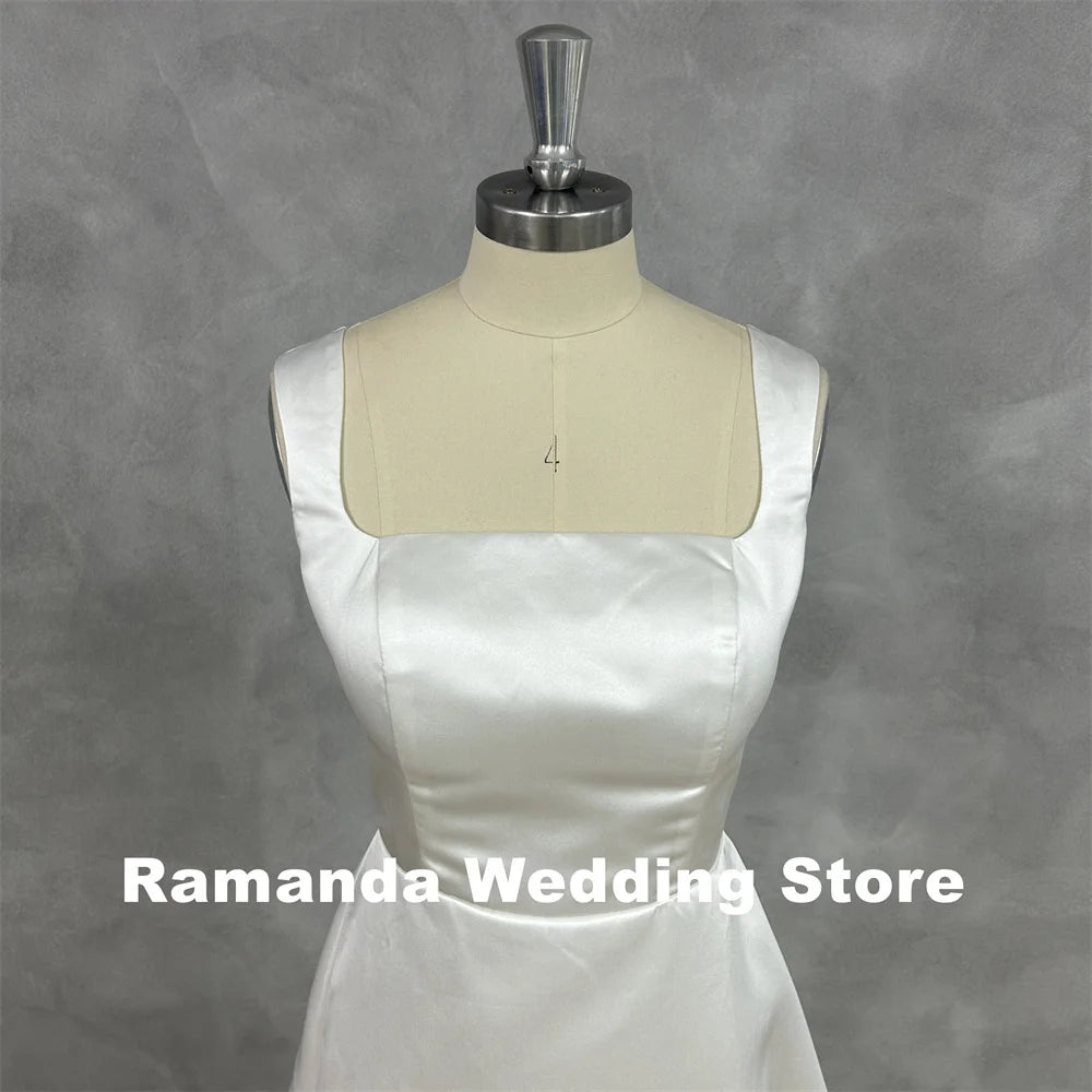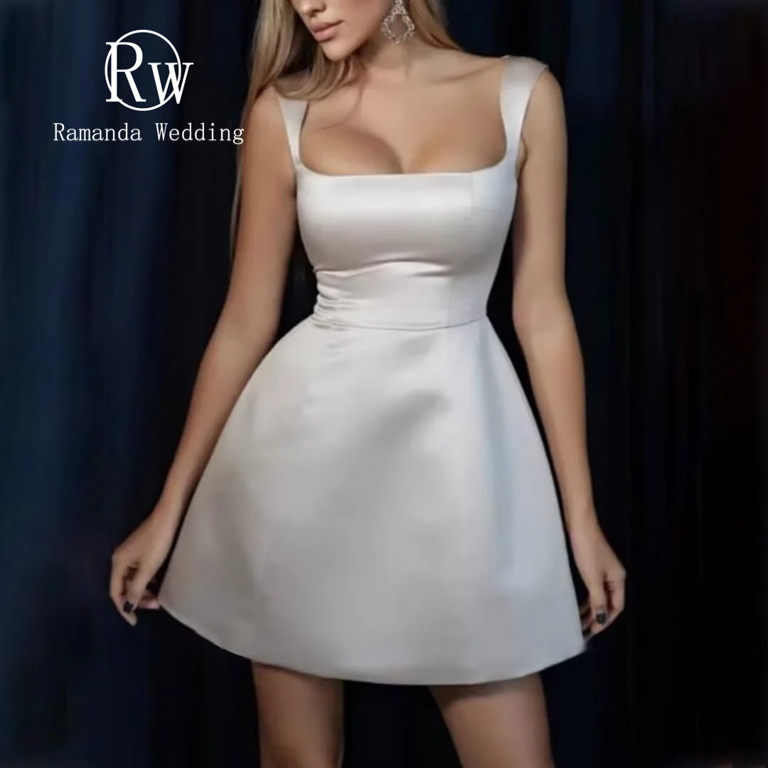 Ramanda Mini Square Neck Short Wedding Dress For Women Simple Sleeveless Satin Bridal Gown For Charming Women Vestidos De Novia