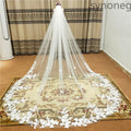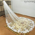 Real Photo 3m.4m.5m One Layer Wedding Veil With Comb White Lace Edge Bridal Veils Ivory Appliqued Cathedral Wedding Veil