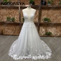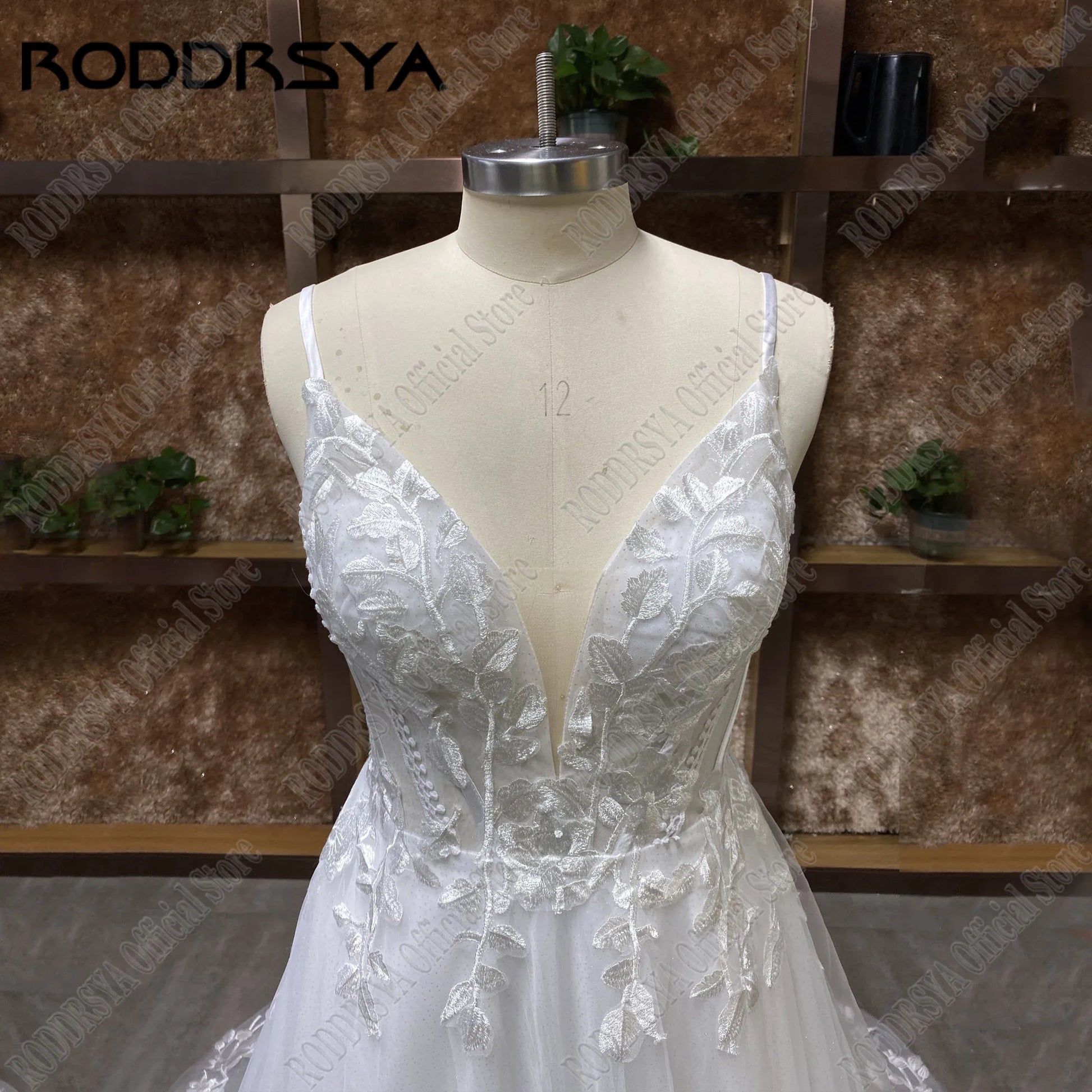 RODDRSYA Spaghetti Straps Glitter Wedding Dresses V-Neck Shiny Tulle With Applique Backless Bohemia Lace Bridal Gowns Plus Size