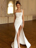 Satin Elegant Wedding Dresses Square Collar One Shoulder Bridal Gowns Sexy Backless Robes 2024 Side Slit Vestidos De Novia 2023